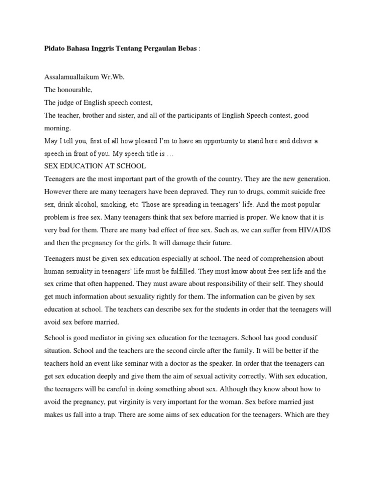 Naskah Pidato Bahasa Inggris Tentang Pergaulan Bebas Docx